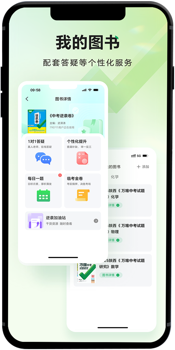 真人1V1答疑:购买2025季《逆袭卷》《黑白卷-数理化》(北京为英数理)的用户,可通过图书激活码,在App激活答疑服务。学习中遇到学科相关的各类困惑,可随时通过真人老师答疑解决。