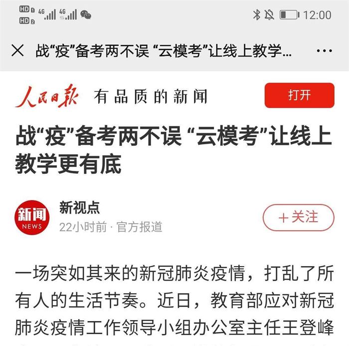 自3月15日起,万唯为全国12个省区市陆续举办了公益“线上大模考”,旨在助力各学校对初三生在线学习情况进行有效摸排。截止目前,已有超65万2020中考生参加模考或报名模考!这场特殊的“模考”,引起了人民日报客户端的关注,称赞其“让线上教学更有底”。
